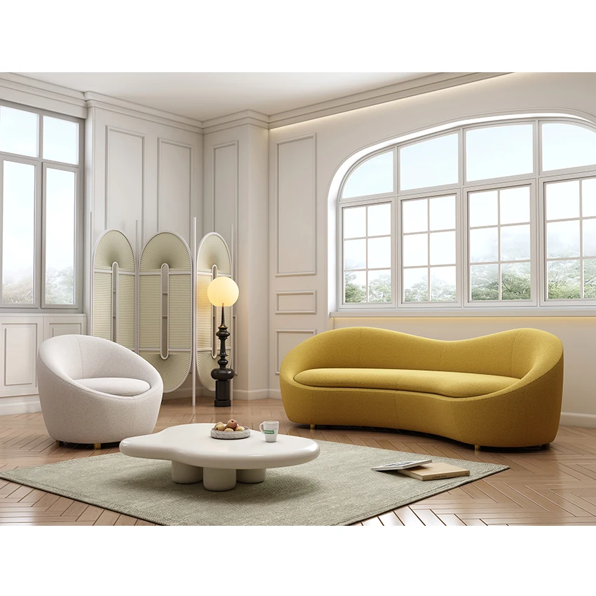 This weatherproof, beautifully curved sofa brings soft texture, rich color, and sculptural presence into any living room. Perfect for homes, apartments, hotels, offices, and styled interiors that demand both beauty and durability.